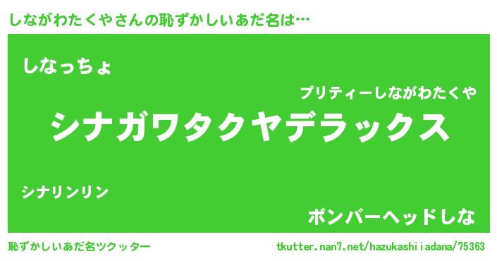 | 意味不明あだ名 | 『自称しながわたくや』 |