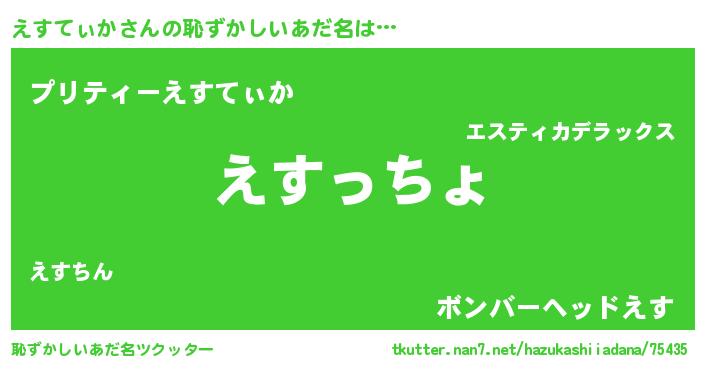 | 意味不明あだ名 | 『住所不定無職えすてぃか(14歳)』 |