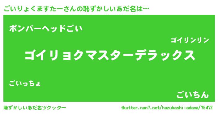 | ヒーロー風カッコイイあだ名 | 『超時空戦士ゴイリョクマスター』 |