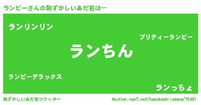 | 意味不明あだ名 | 『永久保存ランピー』『ペロリンランピー』 |
