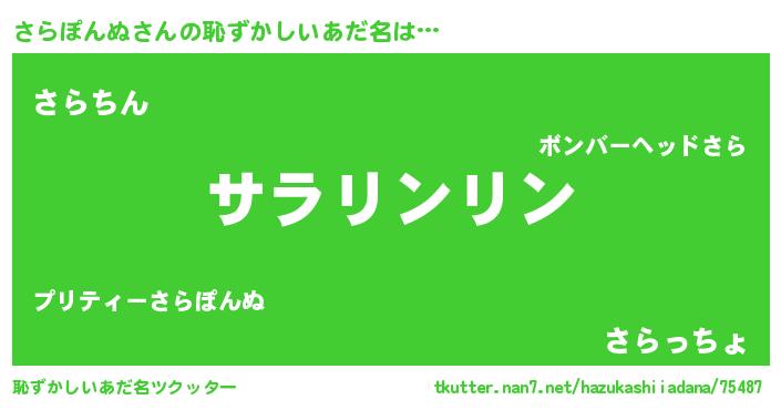 | ヘコむあだ名 | 『さらっちょ』『さらぽんぬ(震え声)』 |
