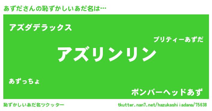 | 男性向けラノベタイトル風あだ名 | 『魔弾の王とあずだ』『あずだの憂鬱』 |
