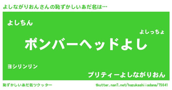 | ヘコむあだ名 | 『よしながりおん(遠い目)』『よしもー』 |
