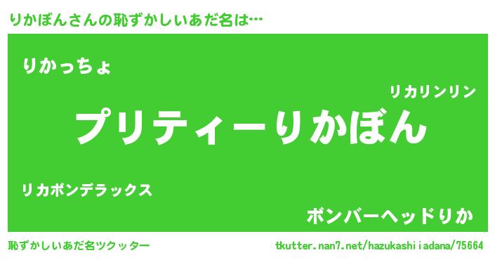 | 男性向けラノベタイトル風あだ名 | 『りかぼんの憂鬱』 |