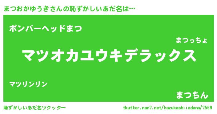 | 男性向けラノベタイトル風あだ名 | 『この素晴らしい世界にまつおかゆうきを!』 |