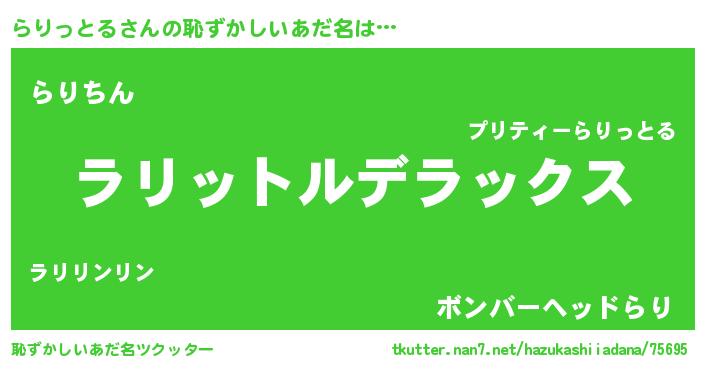 | ヒーロー風カッコイイあだ名 | 『超時空戦士ラリットル』『天弓騎士ラリ』 |