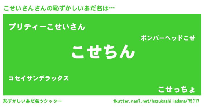 | ヘコむあだ名 | 『こせいさん(震え声)』『こせっふぃ~』 |