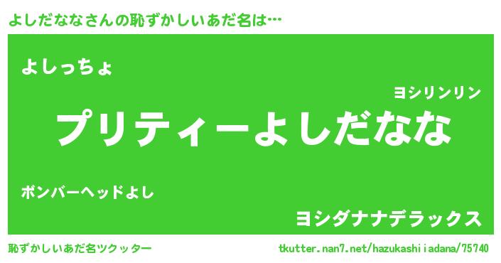 | 意味不明あだ名 | 『ペロリンよしだなな』『自称よしだなな』 |