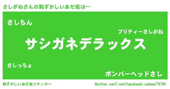 | 意味不明あだ名 | 『自称さしがね』『永久保存さしがね』 |