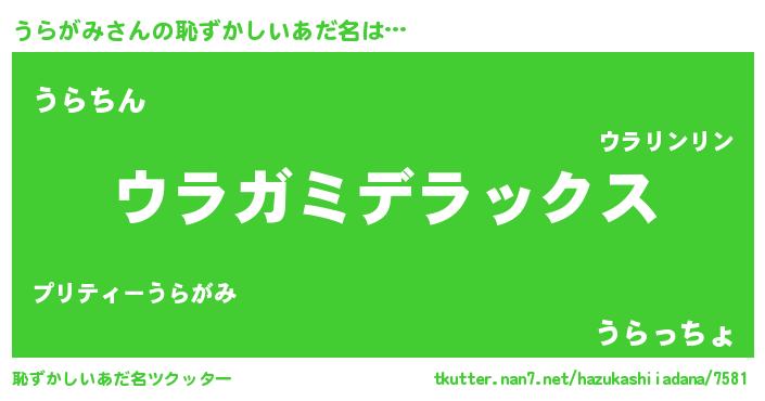 | 意味不明あだ名 | 『自称うらがみ』『ニラ科うらがみ属』 |
