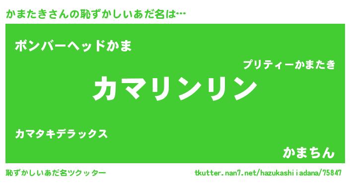 | 男性向けラノベタイトル風あだ名 | 『かまたきの嫁は女の子じゃないと思った?』 |