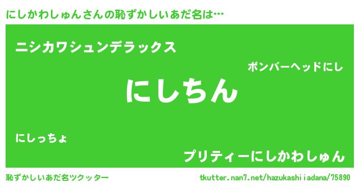 | ヘコむあだ名 | 『にしかわしゅん(震え声)』『にしにー』 |