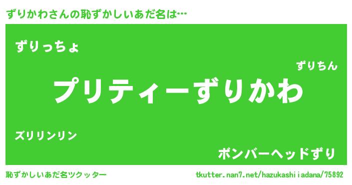 | ファンタジー風あだ名 | 『ズリフェル』『エターナルズリカワー』 |