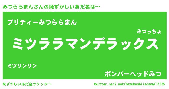 | 意味不明あだ名 | 『自称みつららまん』 |