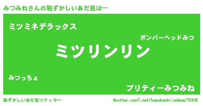 | 男性向けラノベタイトル風あだ名 | 『みつみねの嫁は女の子じゃないと思った?』 |