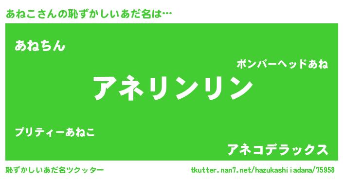 | ポケモン風あだ名 | 『ヒアネコ』『ゼニアネ』『アネゴンZ』 |