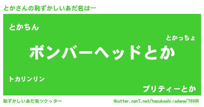 | ヒーロー風カッコイイあだ名 | 『慈愛の使者とか』『ネオトカ』 |