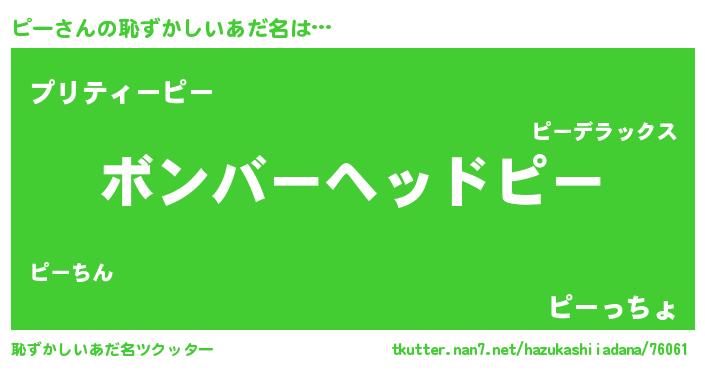 | ヘコむあだ名 | 『ピーにゅー』『つくし』『ピー太郎』 |