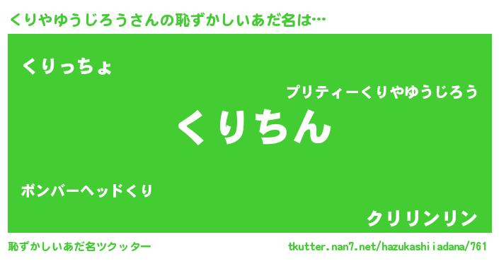 | 意味不明あだ名 | 『永久保存くりやゆうじろう』 |
