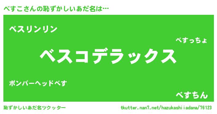 | 男性向けラノベタイトル風あだ名 | 『Re:べすこから始める異世界生活』 |