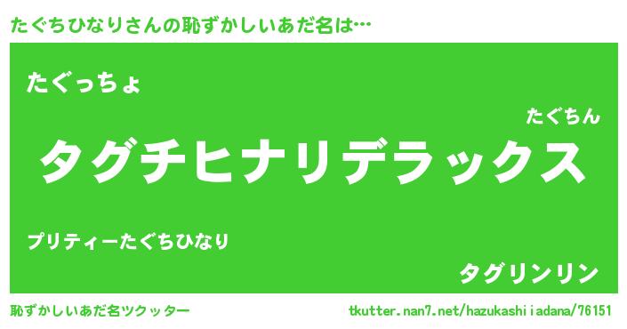 | ヒーロー風カッコイイあだ名 | 『究極戦士タグチヒナリ』『天弓騎士タグ』 |