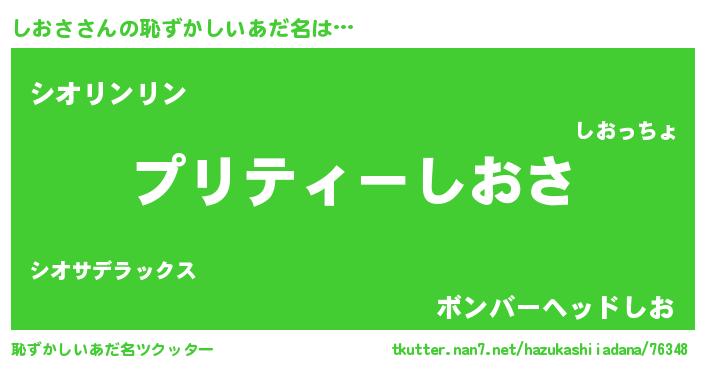 | 意味不明あだ名 | 『ペロリンしおさ』『もやし科しおさ属』 |