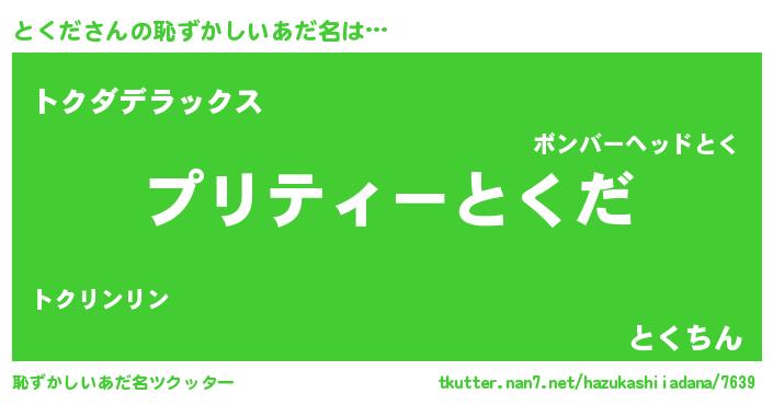 | ヘコむあだ名 | 『とくにゅー』『とくだ(苦笑)』 |