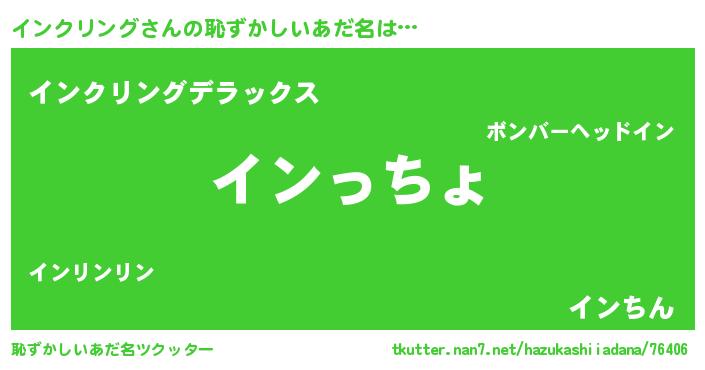 | 意味不明あだ名 | 『インクリングフォーエバー』 |