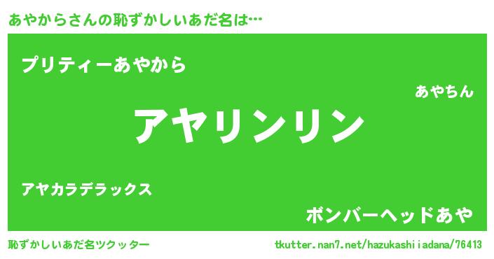 | ヒーロー風カッコイイあだ名 | 『魔戒騎士アヤ』『スーパーアヤカラ』 |