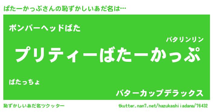 | 胡散臭い通販商品みたいなあだ名 | 『必ず成功するブレスレット…その名も「ばたーかっぷ」』 |