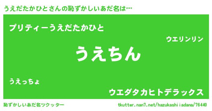 | ヘコむあだ名 | 『うえだたかひと(笑)』『うえっふぃ~』 |
