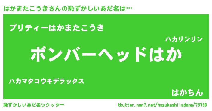 | 男性向けラノベタイトル風あだ名 | 『はかまたこうき~年齢イコール彼女いない歴の魔法使い~』 |
