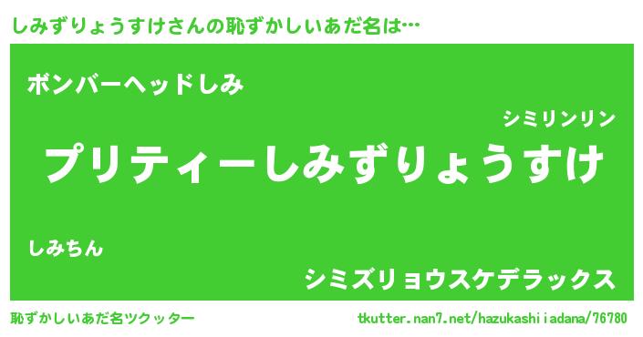 | 意味不明あだ名 | 『住所不定無職しみずりょうすけ(93歳)』 |