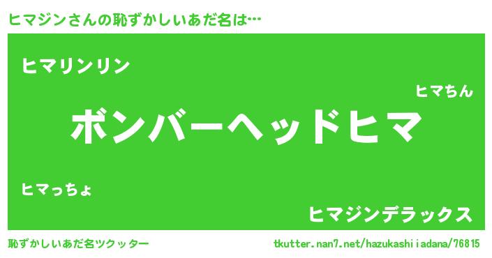 | ヒーロー風カッコイイあだ名 | 『天空の使者ヒマジン』『仮面ヒマダー』 |