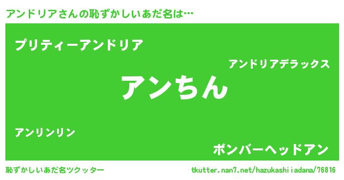 | 意味不明あだ名 | 『永久保存アンドリア』『自称アンドリア』 |