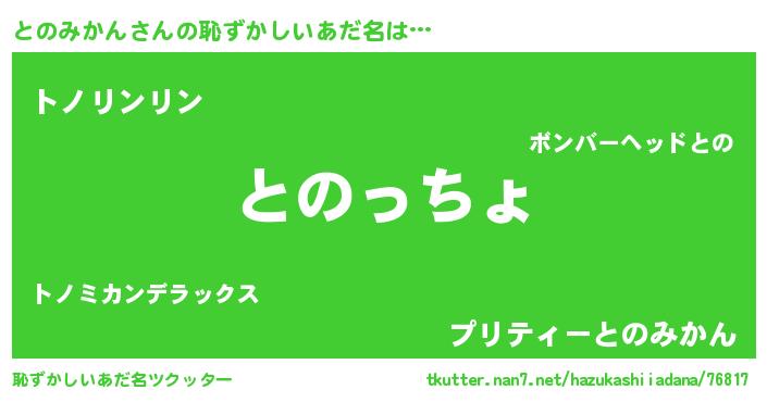 | 意味不明あだ名 | 『とのみかんフォーエバー』 |