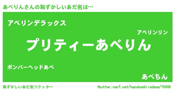 | ヒーロー風カッコイイあだ名 | 『スーパーアベリン』『仮面アベダー』 |
