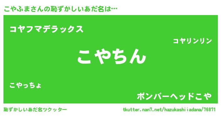 | ヒーロー風カッコイイあだ名 | 『ネオコヤフマ』『ウルトラ戦士コヤフマ』 |