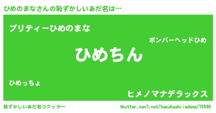 | 料理風あだ名 | 『ひめのまなのカルパッチョ風』 |