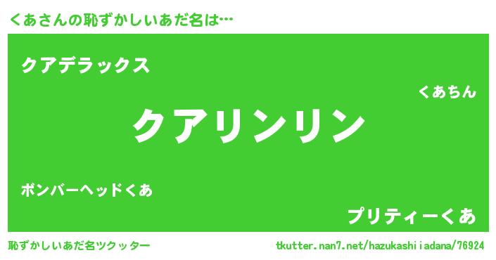 | ヘコむあだ名 | 『くあぷりん』『くあっふぃ~』 |