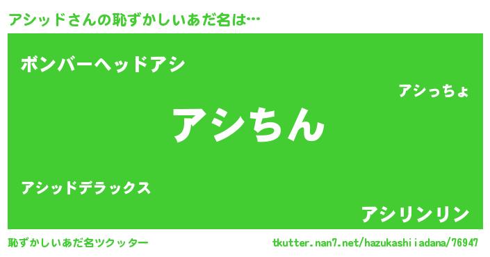 | ヘコむあだ名 | 『アシッド(笑)』『アシぷりん』 |