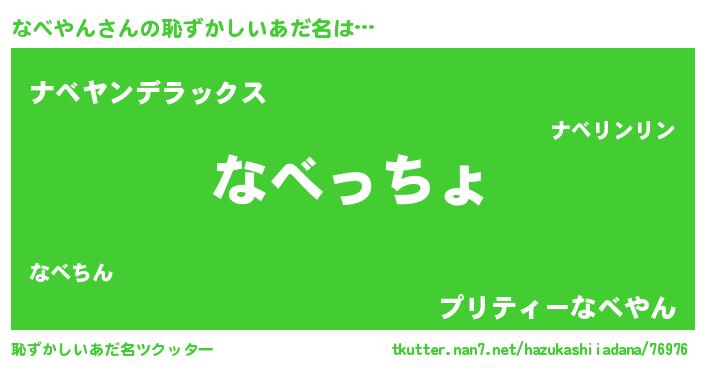 | ヘコむあだ名 | 『つくし』『なべふぇ~』『なべを』 |
