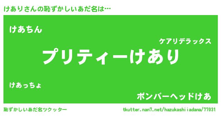 | 男性向けラノベタイトル風あだ名 | 『けありの憂鬱』『魔弾の王とけあり』 |