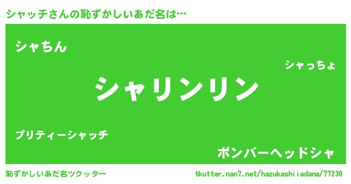 | 男性向けラノベタイトル風あだ名 | 『シャッチの嫁は女の子じゃないと思った?』 |
