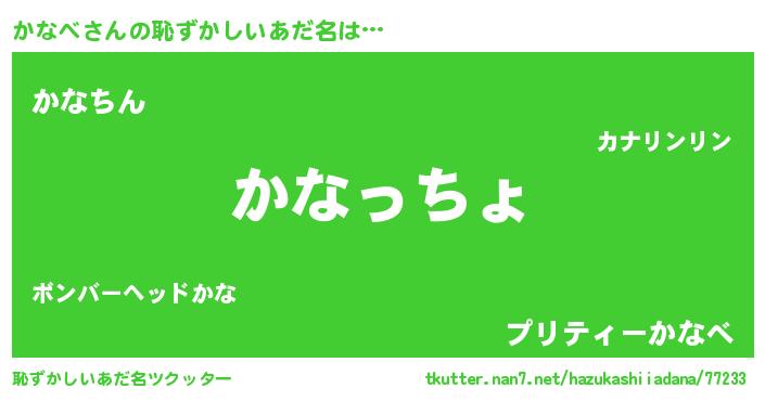 | 欧米人風あだ名 | 『かなべクリステル』『ダレノガレかなべ』 |