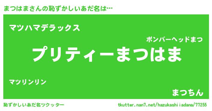| 2回繰り返すあだ名 | 『まつまつ』『まじまじ』『たぽたぽ』 |