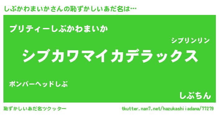 | ヒーロー風カッコイイあだ名 | 『仮面シブダー』『ネオシブカワマイカ』 |