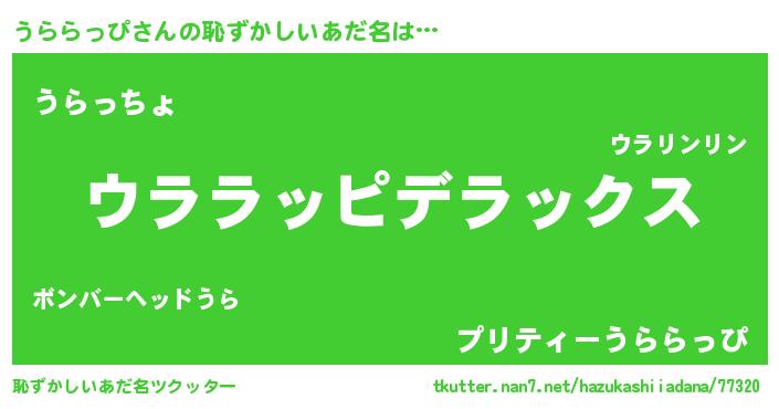 | 意味不明あだ名 | 『自称うららっぴ』『ペロリンうららっぴ』 |