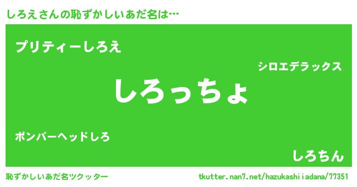 | 意味不明あだ名 | 『しろえフォーエバー』『ペロリンしろえ』 |
