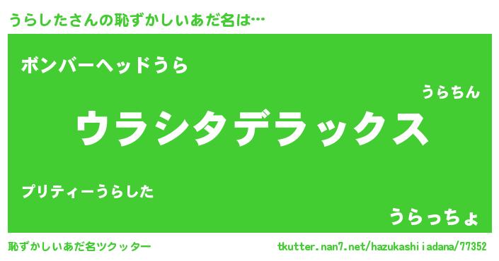 | 男性向けラノベタイトル風あだ名 | 『Re:うらしたから始める異世界生活』 |